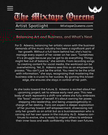 Step into the vibrant universe of D. Adeena, the genre-bending pop hip-hop artist with spunk, and a whole lot of soul. Here, the stars align, the roses bloom, and the beats never stop.
