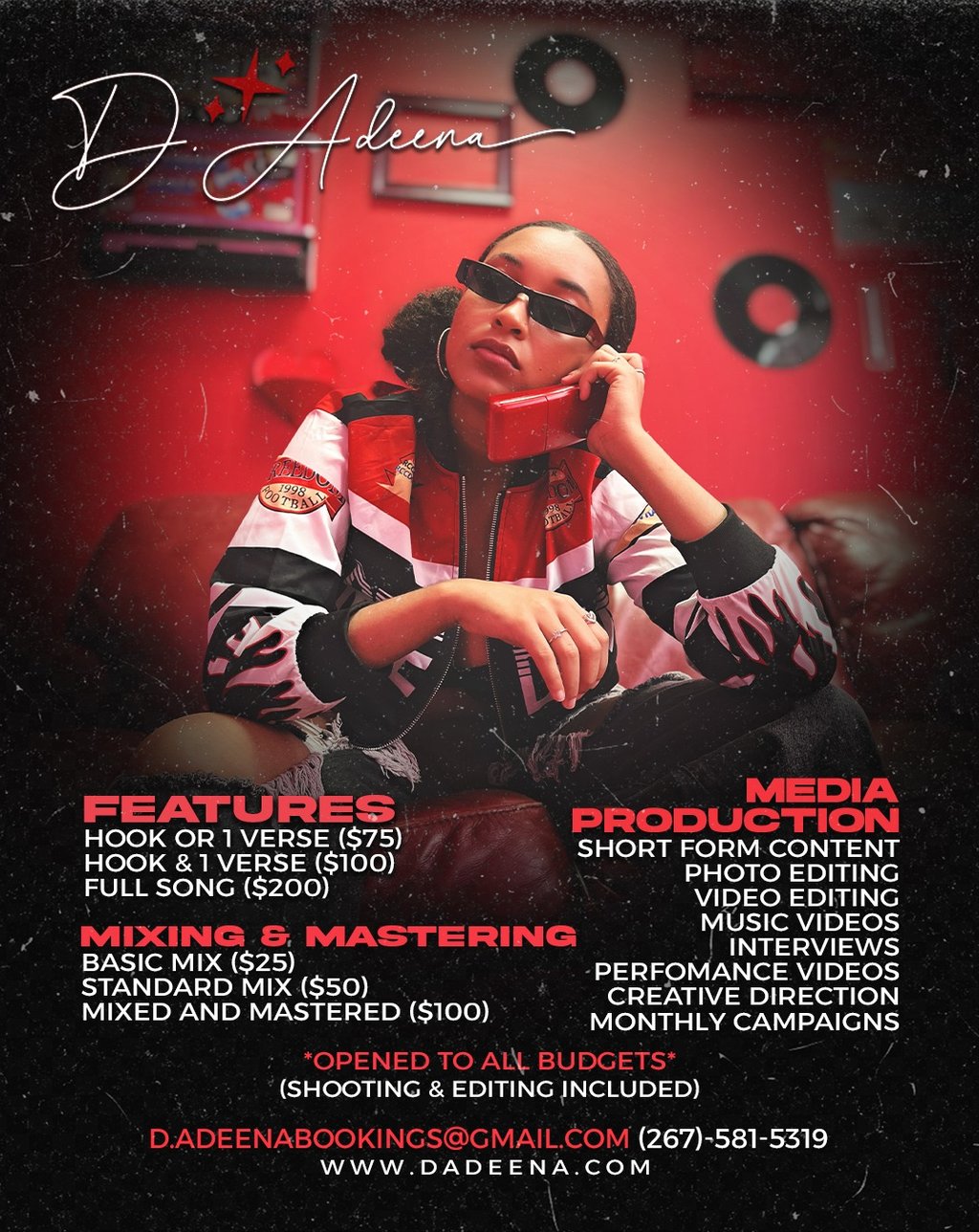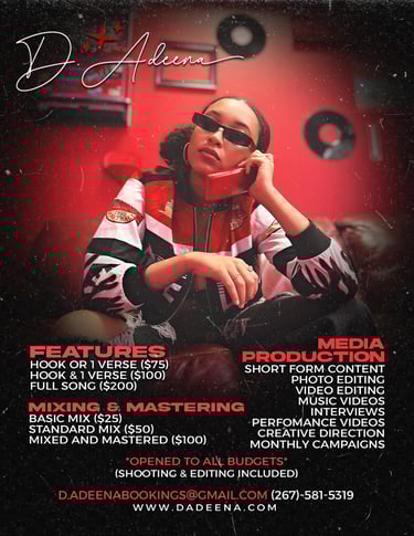 As a dynamic music artist, D. Adeena brings her expertise beyond the stage, offering a suite of services designed to elevate your Music and Brand.